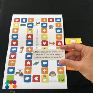 Este jogo de tabuleiro, direcionado para intervenção em pequeno grupo, procura, através de um momento lúdico, explicar a importância do elogio como forma de reconhecimento do outro e como potenciador de autoestima. Trabalha também competências sociais, abordando, por exemplo as atitudes a ter quando se recebe um elogio.