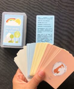 “Dois dedos de conversa” é um baralho de cartas, destinado a crianças e jovens entre os 6 e os 18 anos. É um jogo de pergunta-resposta, em que cada jogador tira uma carta à sua escolha e responde.